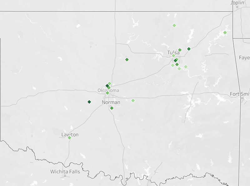 - Oklahoma City is about 5.5 hours via van/car.